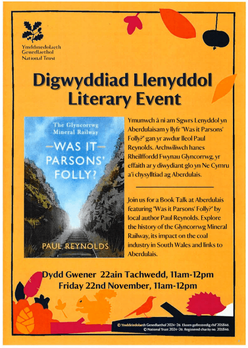 Join Paul Reynolds for a talk on his recent book on the Glyncorrwg Mineral Railway, Was it Parson’s Folly?, at Aberdulais National Trust.